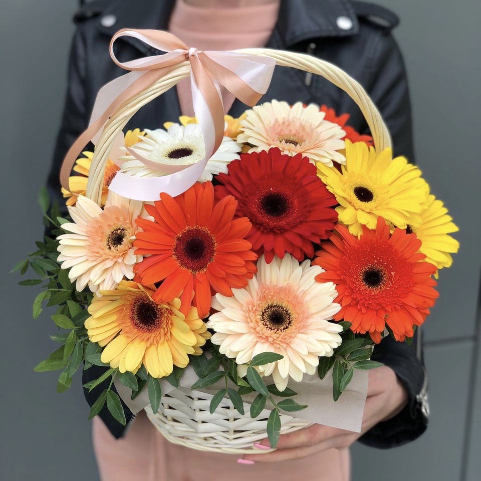 Состав: Гербера (17), Писташ (6), Корзина, Оазис (2), Оформление